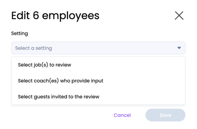 The settings you can change in bulk when creating a review cycle are;