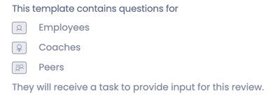💡 When creating review questions, you were able to specify who should answer each question. When you select a template, you can see at a glance who will be asked to provide feedback.