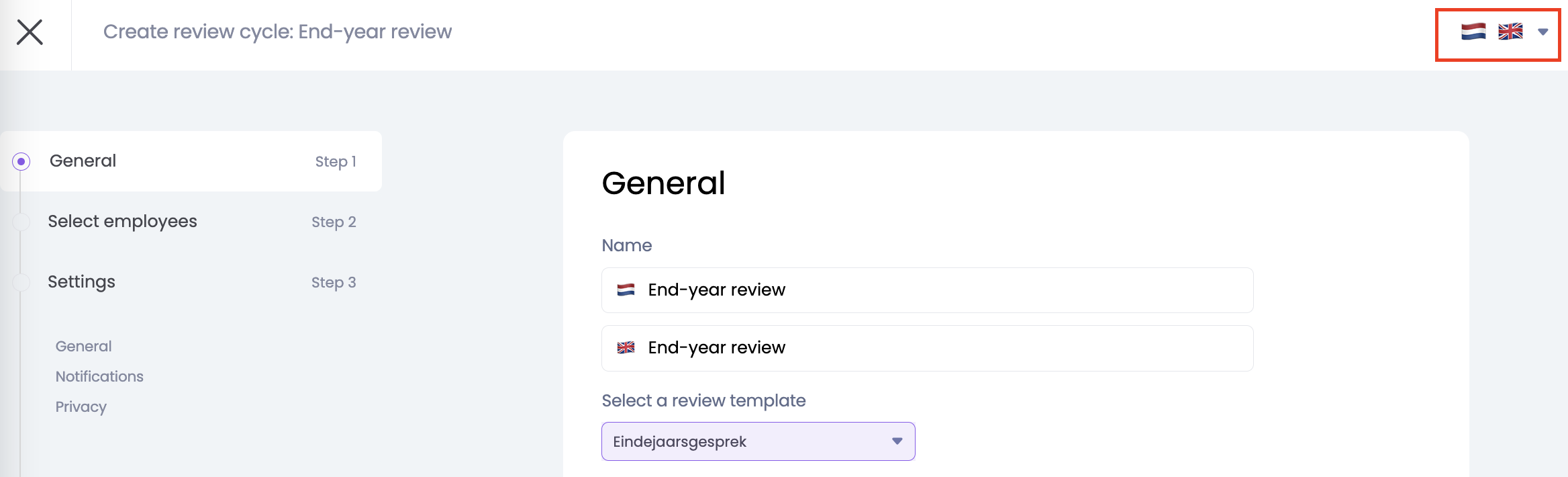 General settingsBelow is an overview of the settings for the review cycle, and what these settings are for: