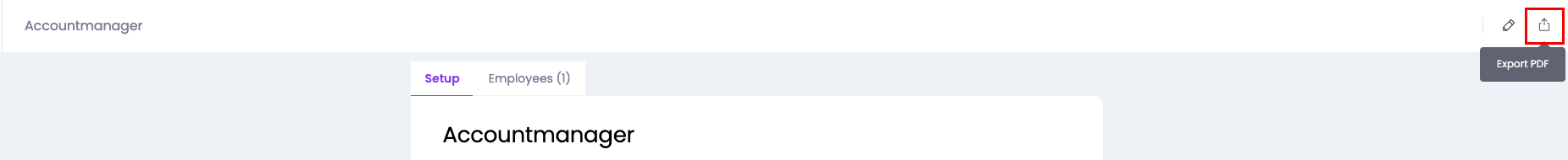 It is possible to make a PDF export of a job profile. Open the profile you want to export and click on the PDF export button top right. You get a clear overview of the job description, all linked KPIs and skills with focus areas.