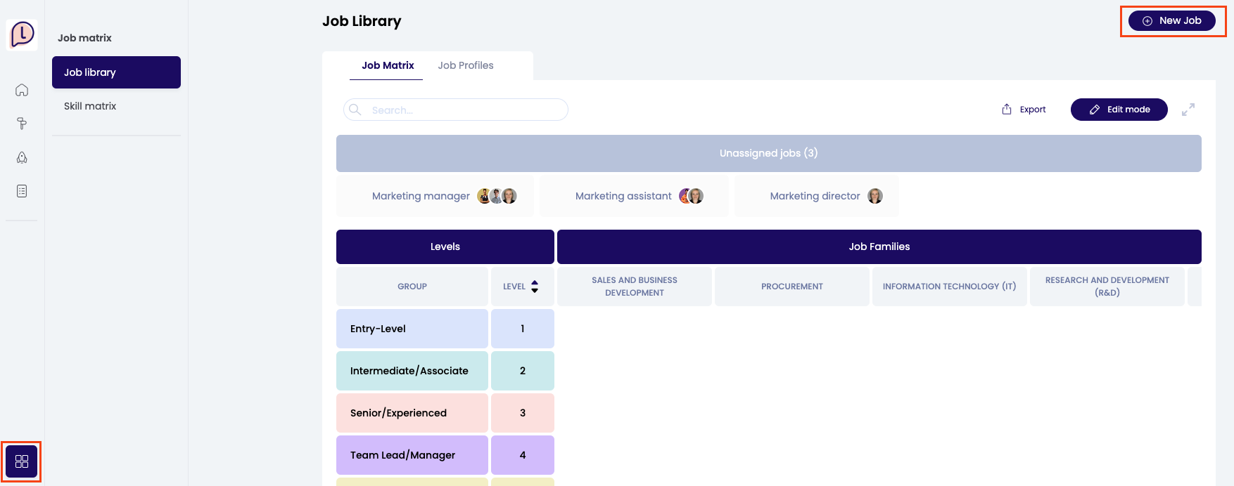 2. Job matrix: This is where you classify the different job profiles within different levels of seniority and into the appropriate job family.