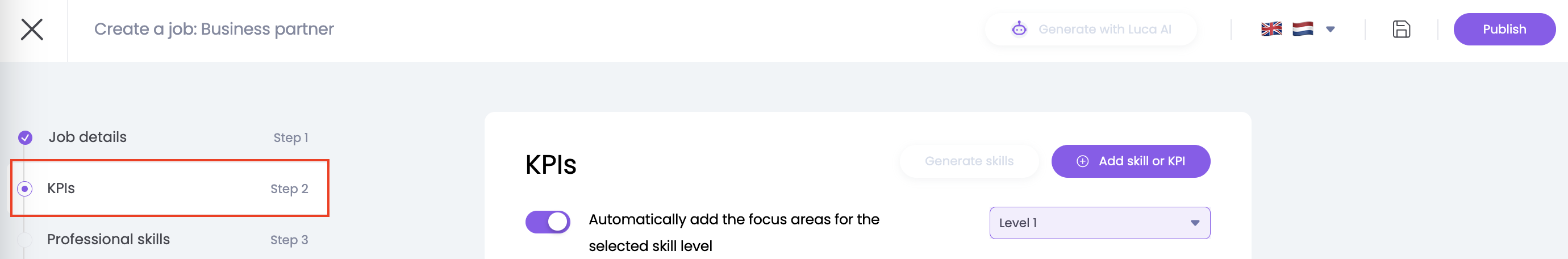 You can also create new skills or KPIs in the job creation flow, which are not yet added in your Learned environment.