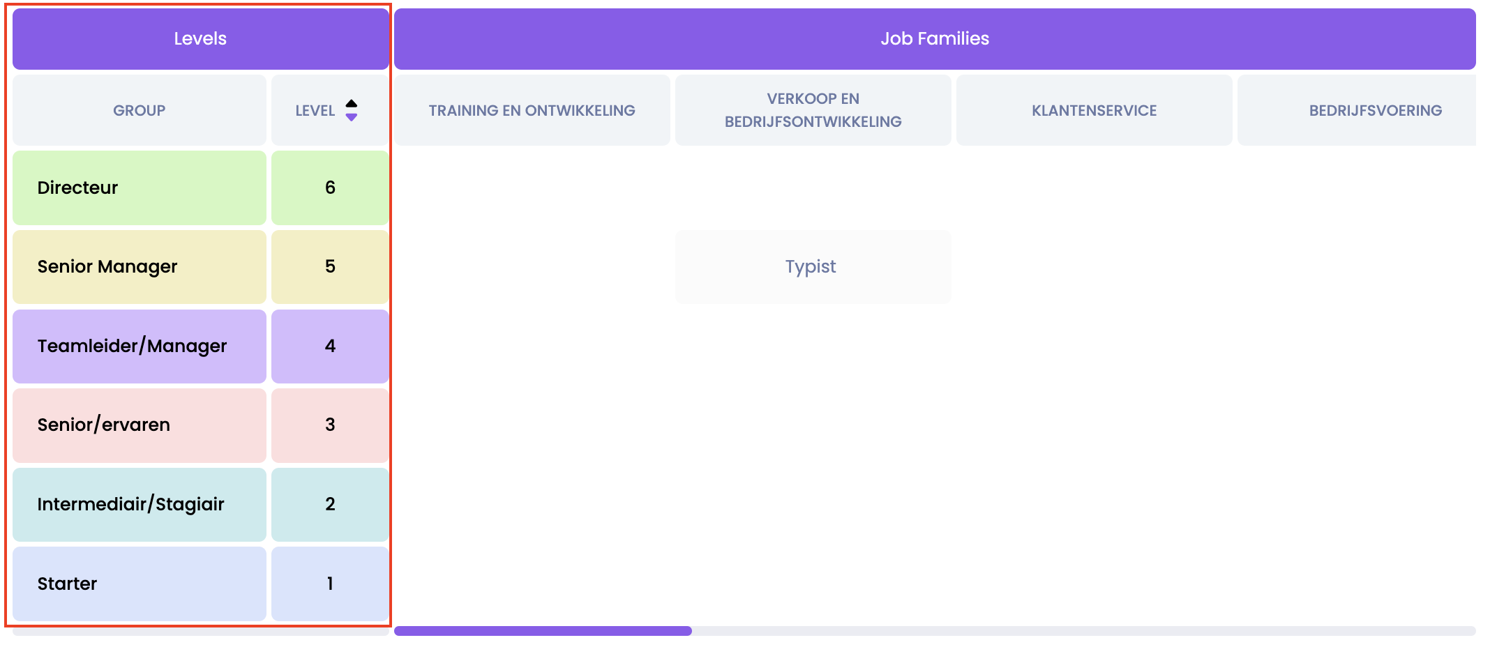 Within the job levels we have distinguished different groups and levels:
