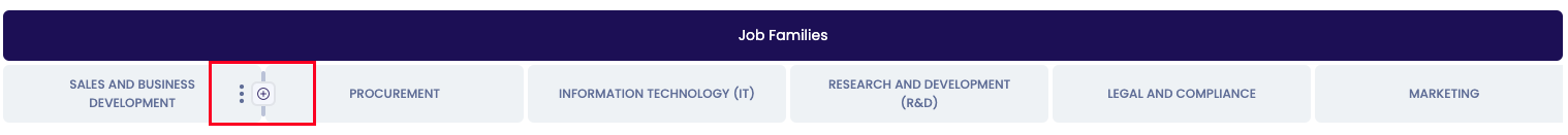 If you want to add, edit or delete job families, you need to be in the Edit mode of the job matrix. Once you are there, you can hover over the job family you want to rename and click on the 3 dots or hover between two job families to add a new job family.