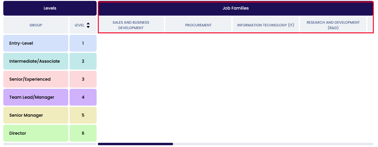 Within the job families you have the option to put all job profiles working in the same department in one job family. E.g. the following profiles can all be placed within the job family of sales and business development: