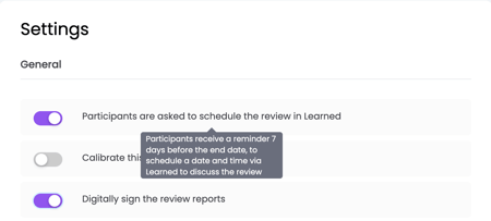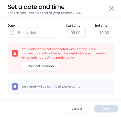 When the option to invite participants when creating a review cycle is enabled, a date and time to discuss the review report can be set via Learned.