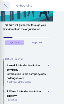 The learning path can consist of 1 or more sections containing 1 or more learning resources. Different sections provide a certain structure and are often used to cover different themes.