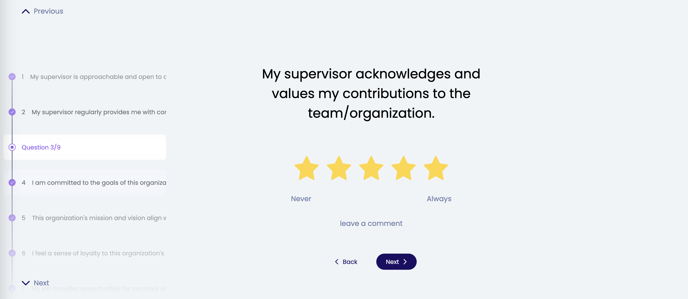 With a Pulse survey you also have the possibility to adjust your answer until the next Pulse survey question is ready for you to answer.