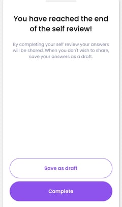 After answering the last question, you get the option to save your answers as a draft. With this option, you do not yet share your input with your coach. When you do share your answers, you make it visible in the report and your coach can see it.