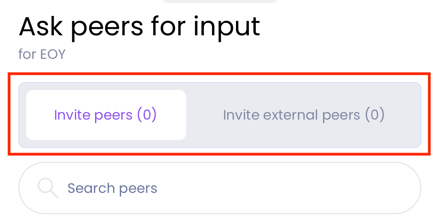 For soliciting peer input, you have the option of asking your colleagues. You can also use the ‘Invite external peers’ tab to ask external people for feedback, e.g. one of your customers/clients via their e-mail address.