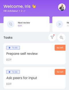 If you are logged into the Learned mobile app, you will see the task ‘Prepare self review’ directly on your screen. If you are also need to ask colleagues for peer feedback, you will also see this task on your screen.