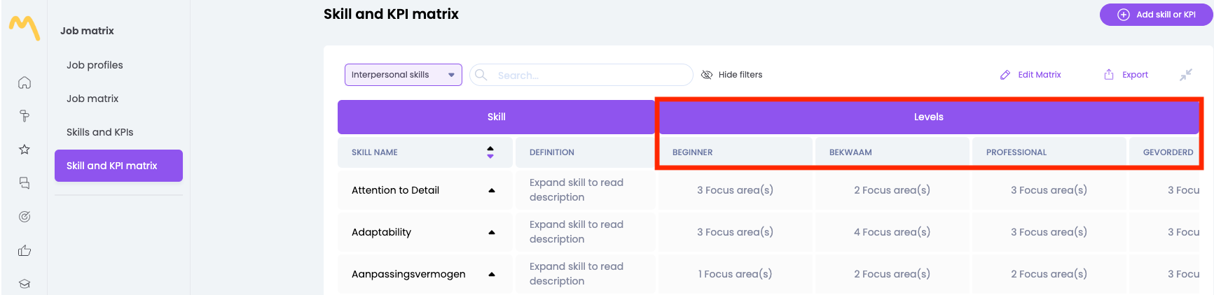 In this article we will show you how to manage the skill levels of your skill matrix as an Admin.