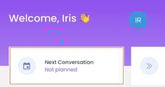When you log into the mobile app, you'll be taken to the home page. Here you'll see when your next conversation is scheduled, have an overview of your tasks that you can get started on, and you can click through to your Next steps page.