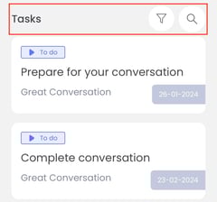 When there are next steps as a result of your conversation or 1:1 meeting, you can find them on the Next steps page. From here you can also easily tick off your next step when you have completed it. Also use the sort, filter and search function for your next steps on this page.