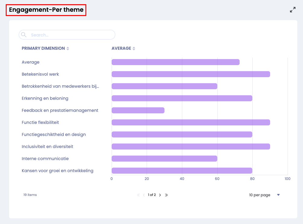 Per theme: Here, you can see your scores for each theme. In this view, you also have the option to compare your scores with those of your team or the entire organization.