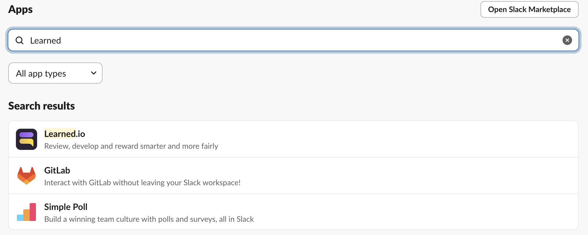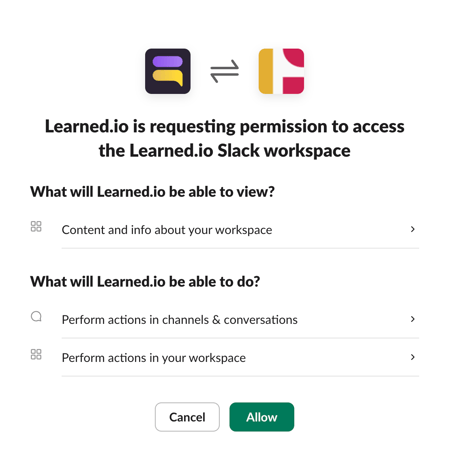 Learned biedt een optionele integratie met Slack waarmee gebruikers eenvoudig inzichten zoals feedback/inzichten of observaties kunnen vastleggen in Learned vanuit Slack, via een slash command of een bericht actie.