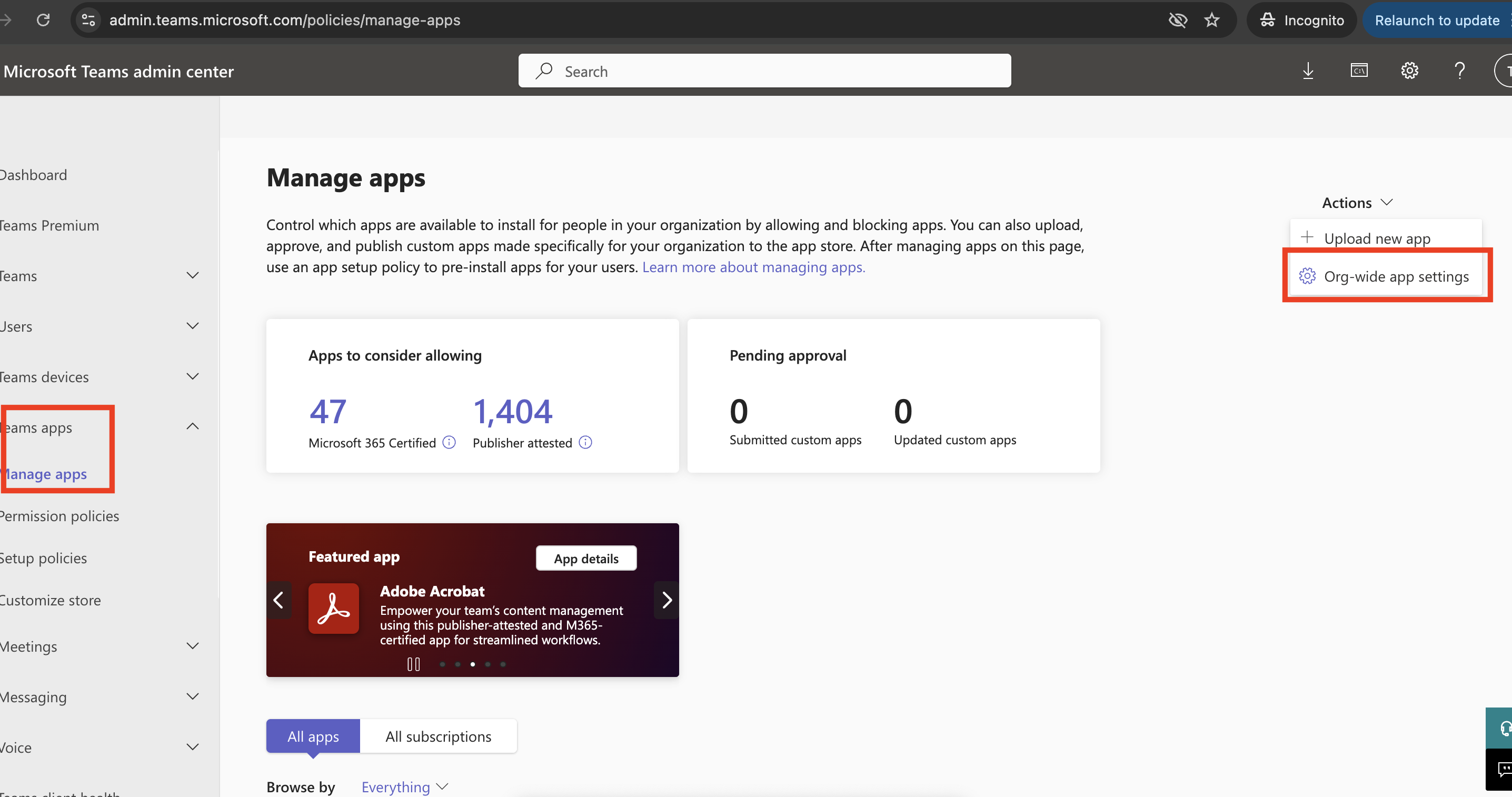 Teams apps >Manage apps