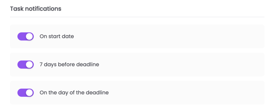 ❗️Let op: De startdatums en deadlines van de taken stel je in bij de Tijdlijn-sectie.