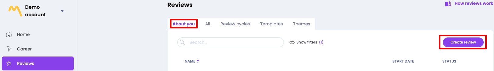 ❗️Let op: Dit is alleen mogelijk wanneer de optie voor medewerkers om hun eigen evaluaties te maken is ingeschakeld door de Admin.
