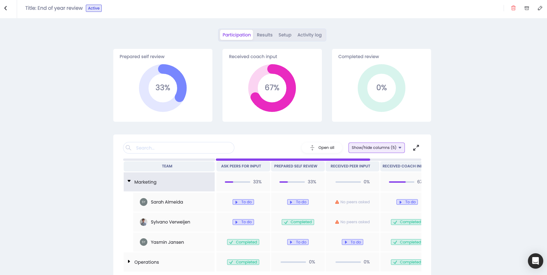 In dit artikel laten we zien hoe je als Admin/Coach een lopende evaluatieronde kunt beheren en analyseren.