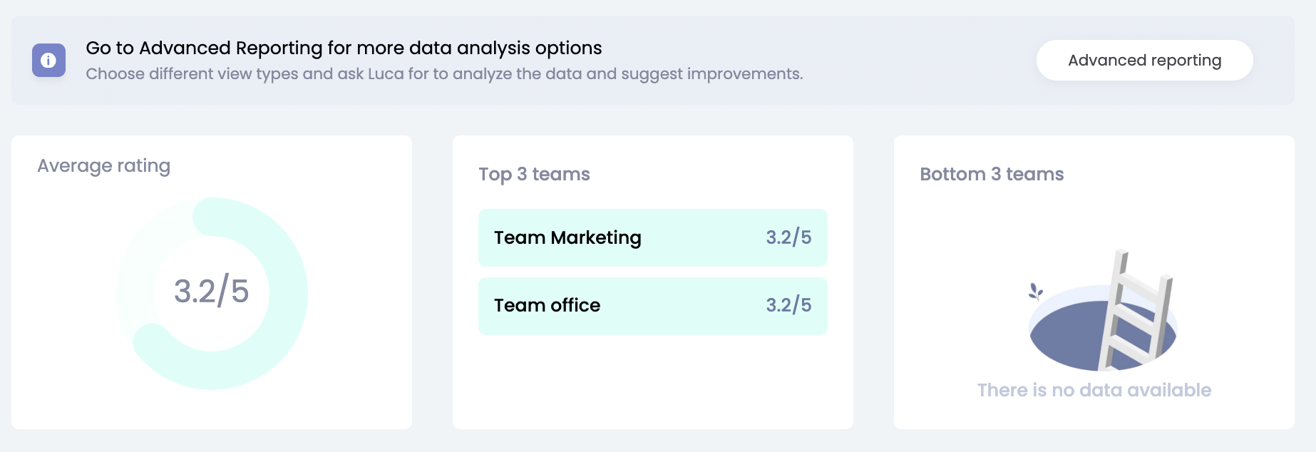 Ga naar Geavanceerde rapportage om een diepere analyse te maken van de evaluatieronde, de gemiddelde performance score.