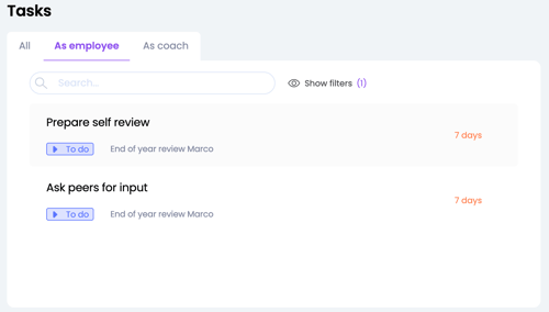 4. Indien er wordt gewerkt met 360Β° feedback, zal je de taak zien verschijnen om een aantal collega's te vragen om je van input te voorzien.