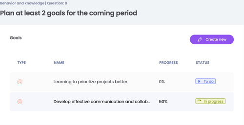 Ook staan er mogelijk een aantal vragen aan het template toegevoegd waarin jou wordt gevraagd te evalueren op de doelen waar je de afgelopen tijd aan hebt gewerkt.