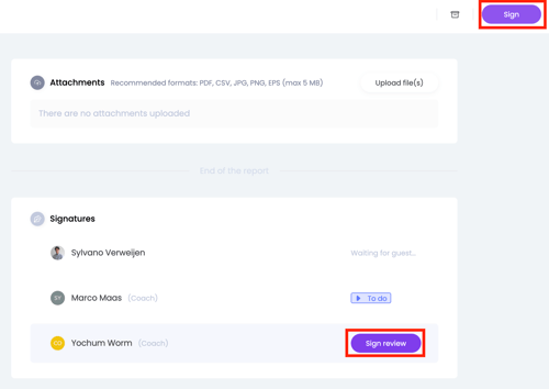 βοΈLet op: Nadat de evaluatie is ondertekend, krijgt deze een 'Signing' status. Hiermee verlopen alle taken en kan er niks meer worden gewijzigd aan de inhoud van het verslag.