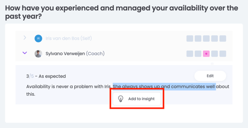 Wanneer je op 'Inzicht aanmaken' klikt, zal deze worden toegevoegd aan jouw Insights over jezelf. Deze kan je later weer gebruiken om jouw toekomstige evaluaties voor te bereiden.
