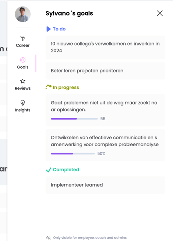 π‘: Door gebruik te maken van de sidebar kan je altijd informatie terugvinden over jouw carriΓ¨re, doelen en historische evaluaties. π: Meer informatie over het werken met de sidebar in Learned? Lees dit artikel.