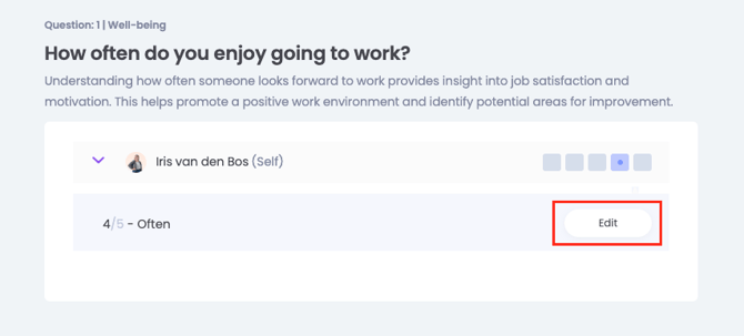π‘: Wanneer je jouw antwoorden wilt bewerken, heb je de mogelijkheid om dit direct vanuit het rapport te doen. Ga met je muis op het antwoord staan en klik op de knop 'Bewerk'.