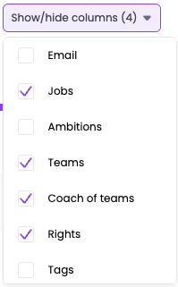 💡: Je kunt kiezen welke kolommen je wilt weergeven op de ledenpagina, om bijvoorbeeld ook e-mail, ambities of tags te vertonen.