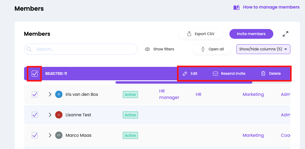 Wil je meerdere oude of inactieve medewerkers tegelijk verwijderen? Dat kan via de multi-select functie.