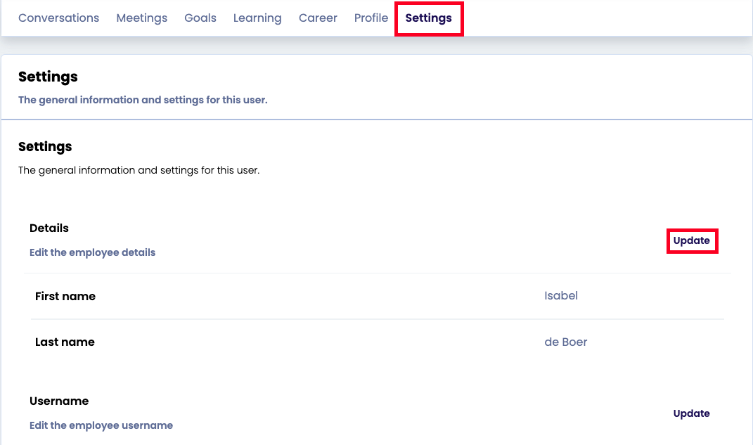 Let op: Werk je met een integratie? Dan zul je de wijziging in het HRIS systeem moeten verwerken en vervolgens via synchronisatie de wijziging in Learned verwerken.