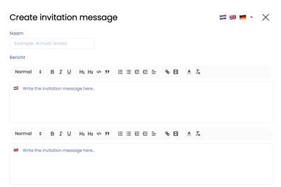 💡 Het uitnodigingsbericht is meertalig aan te maken, afhankelijk van de organisatie instellingen.