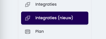 De eerst stap in dit traject is dat je vanaf nu een 2de knop in de linker menubalk ziet Integraties (nieuw).
