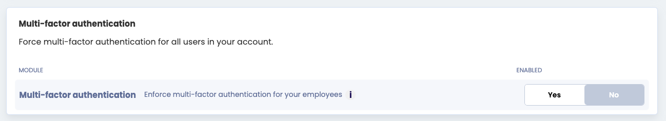Multi-Factor Authentication (MFA): indien je niet met een Single Sign-On (SSO) optie werkt kun je ervoor kiezen om MFA te gebruiken zodat je medewerkers met een beveiligingscode vanaf een extra device kunnen inloggen.