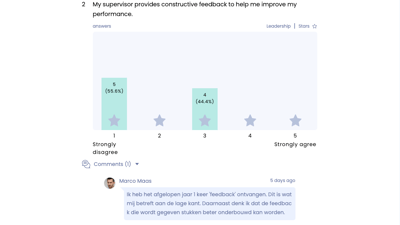 ❗️Let op: Wanneer anonimiteit aan staat, zul je de tekstuele toelichting zien maar zie je niet wie dit heeft geschreven. Staat anonimiteit uit, dan zie je naast de opmerking ook de naam van de medewerker hier terug (zie screenshot hieronder).