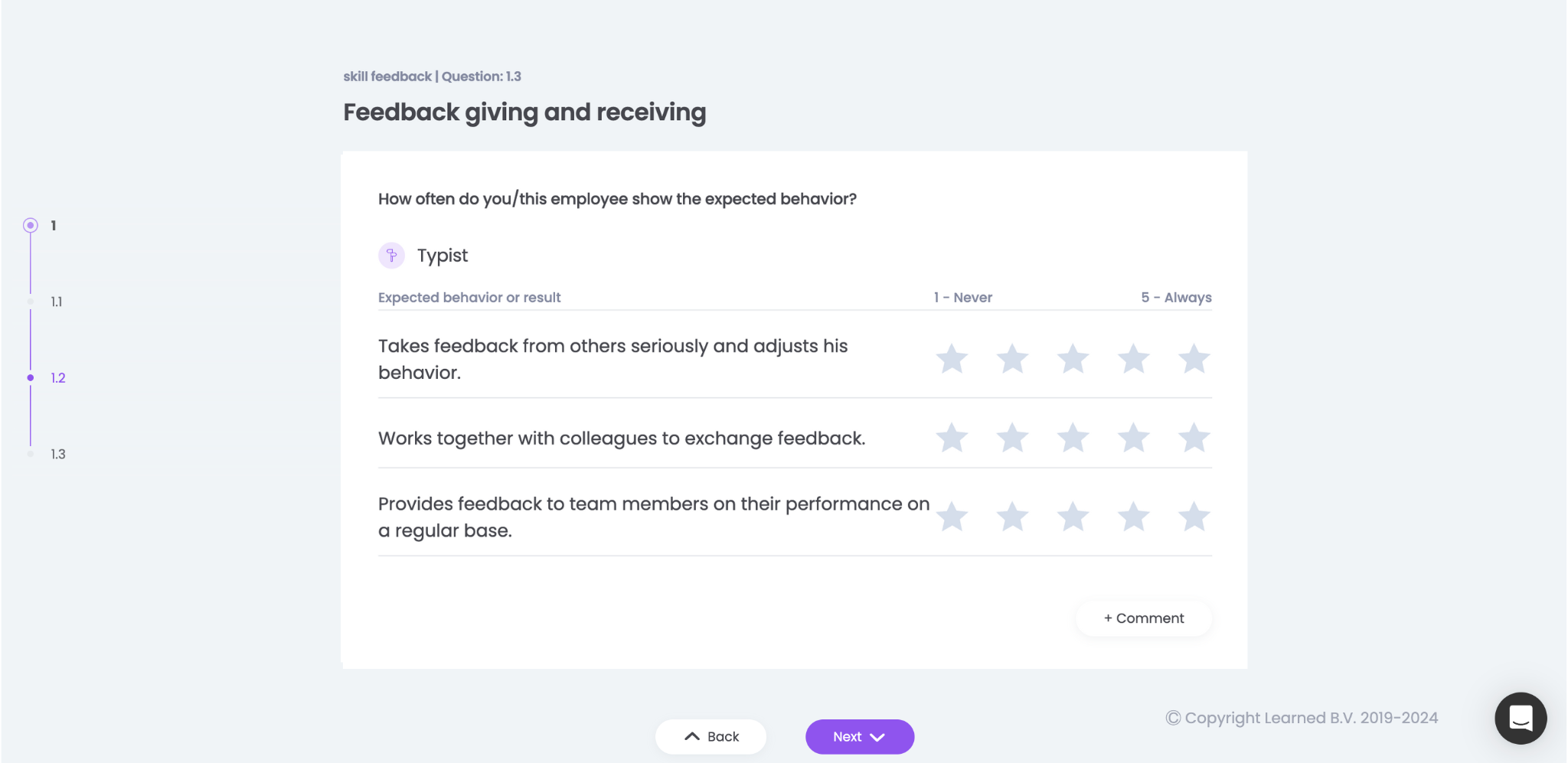Maak volledig gebruik van de Learned skill templates die zijn uitgewerkt met gedragsvoorbeelden per expertise level: